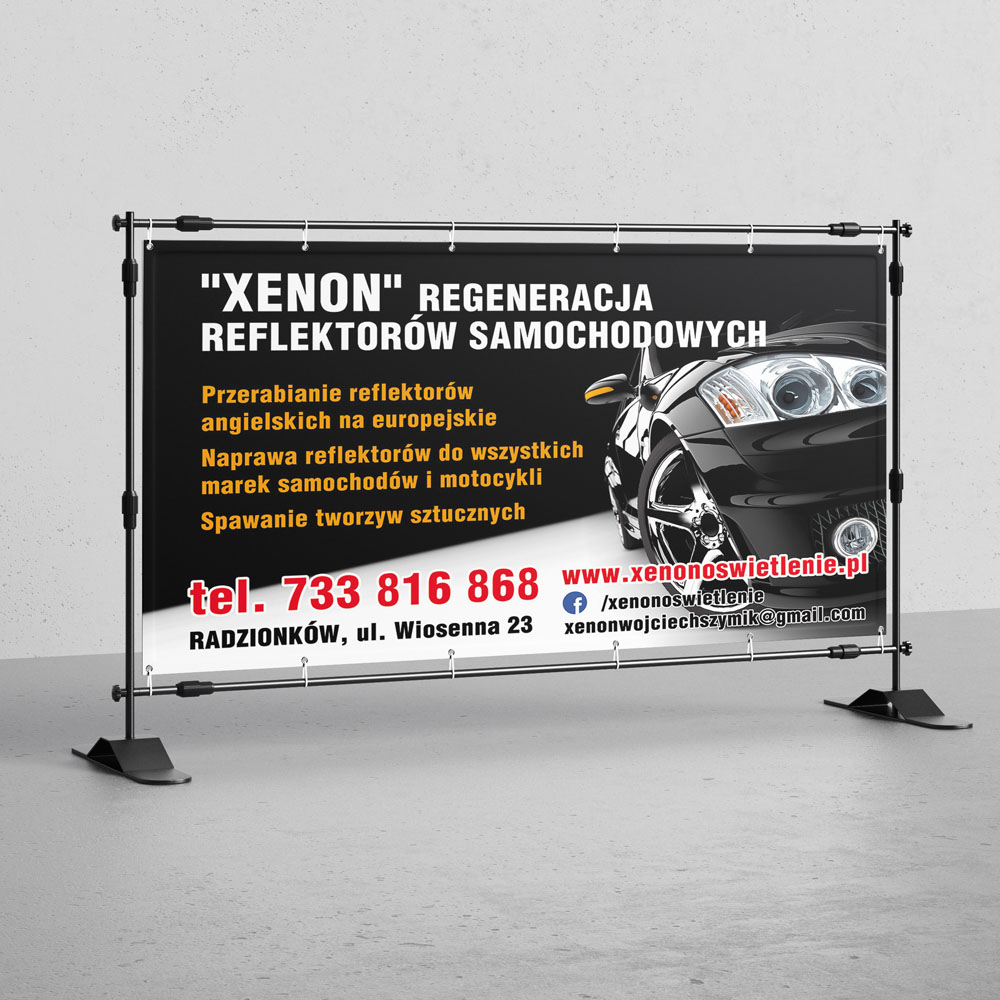 - Banery reklamowe – odporne na warunki zewnętrzne, świetne na ogrodzenia, budynki czy ogłoszenia.
